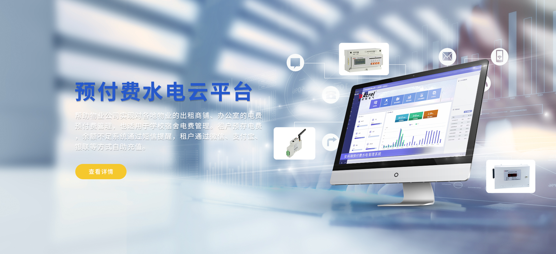 安科瑞提供的解決方案包括Acrel-EIoT能源物聯網云平臺、變電所運維云平臺、安全用電管理云平臺、環保用電監管云平臺智慧消防云平臺、能源管理云平臺、工業企業能源管控平臺、遠程預付費云平臺餐飲油煙監管云平臺、電動汽車/電瓶車充電樁收費管理云平臺、電力監控/無線測溫系統、電能質量治理系統、電氣火災監控系統、消防設備電源監控系統防火門監控系統應急照明和疏散指示系統、智能照明控制系統、醫用隔離電源絕緣監測系統等,幫助用戶實現能源智能化、可視化、精細化管理,提高用能效率和用能安全,為企業節能降耗和實現能源數字化建設提供數據服務。